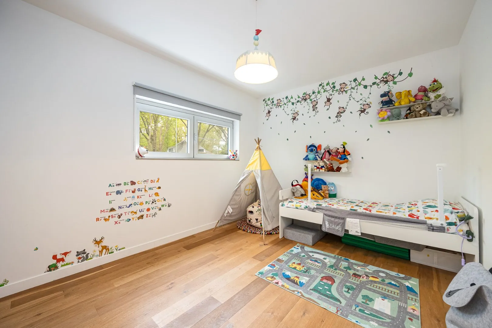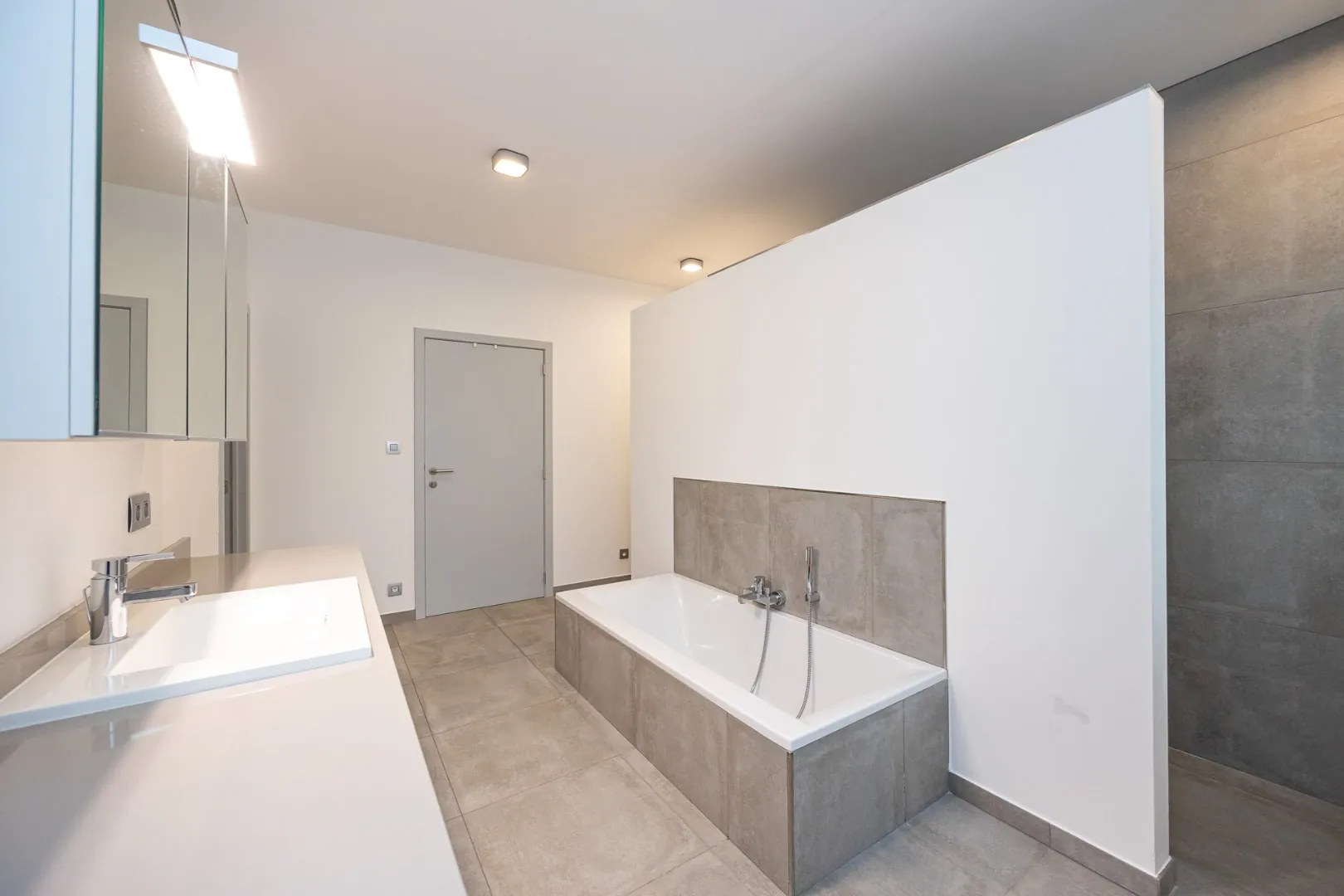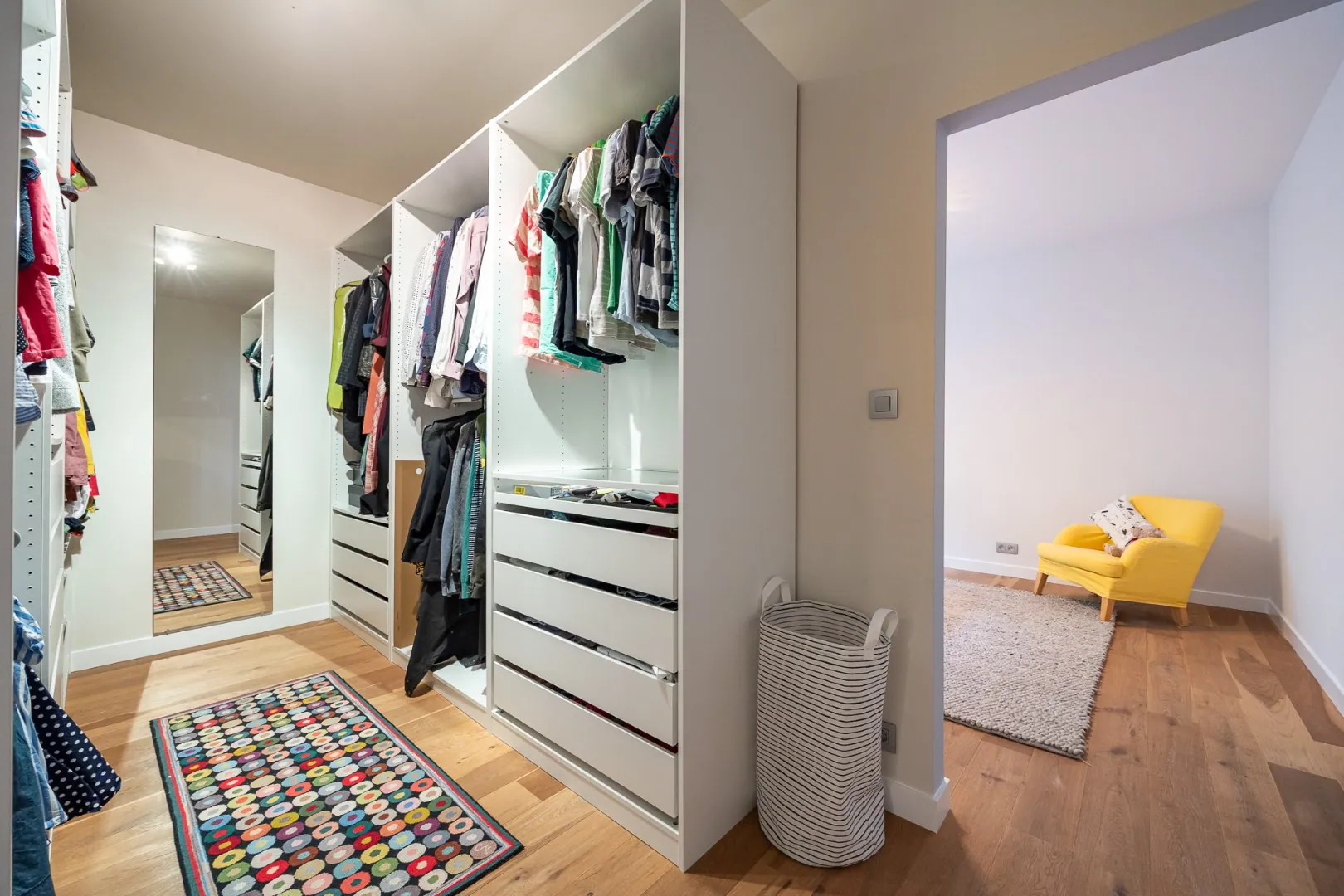 De eerste verdieping fungeert als een tweede volwaardig woonniveau van 209 m², met twee slaapkamers, een gezellige leefruimte, een volledig uitgeruste keuken, een eigen badkamer, een berging en twee terrassen – waaronder een ruim zonneterras met zicht op het groen.