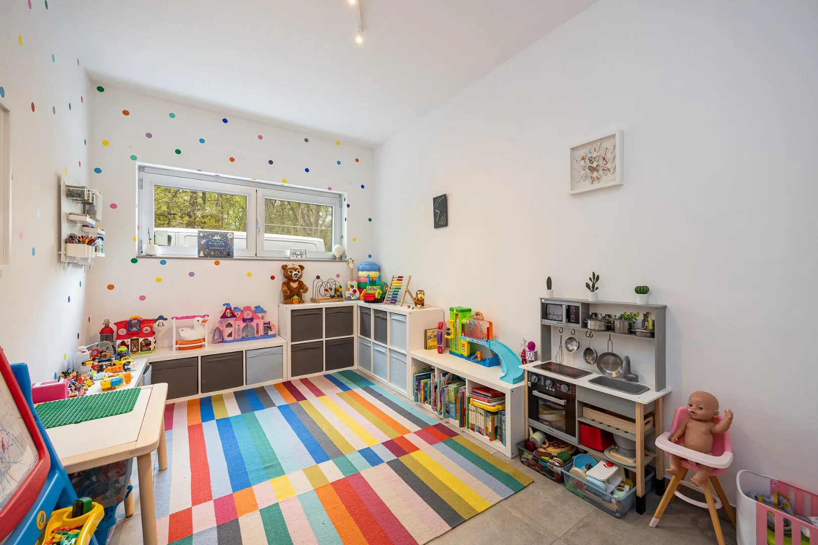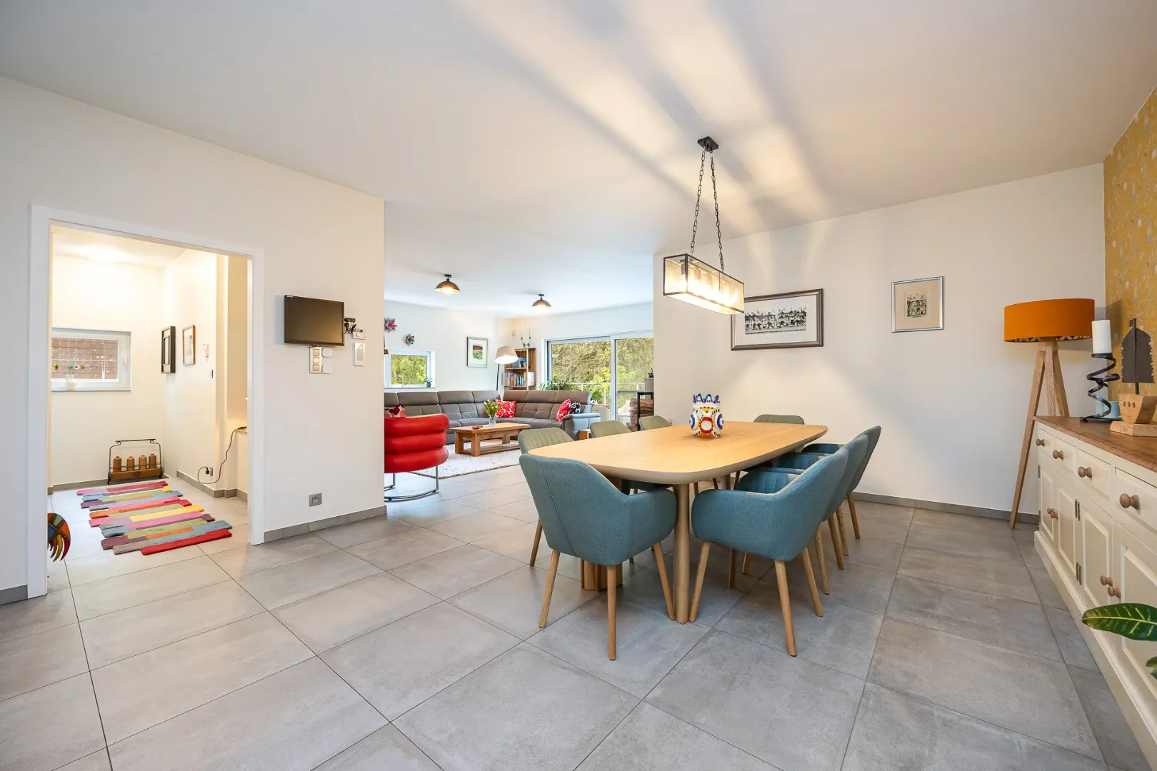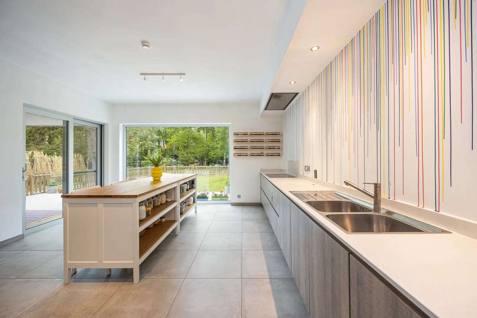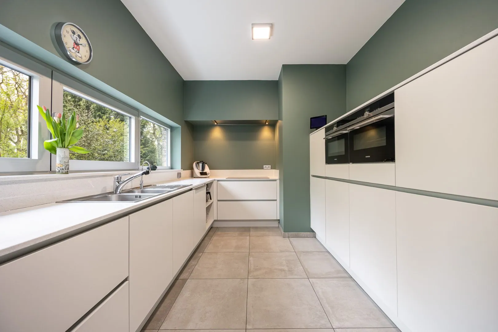 Op het gelijkvloers vinden we een royale bewoonbare oppervlakte van 263 m² met een lichtrijke leefruimte, een moderne en uitgeruste keuken, vier volwaardige slaapkamers, een stijlvolle badkamer en extra douchekamer, een berging en een aangenaam terras met zicht op de prachtige tuin.