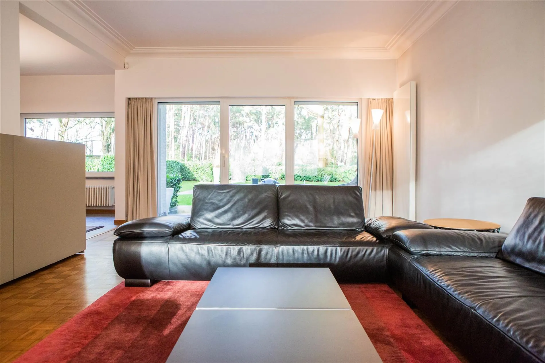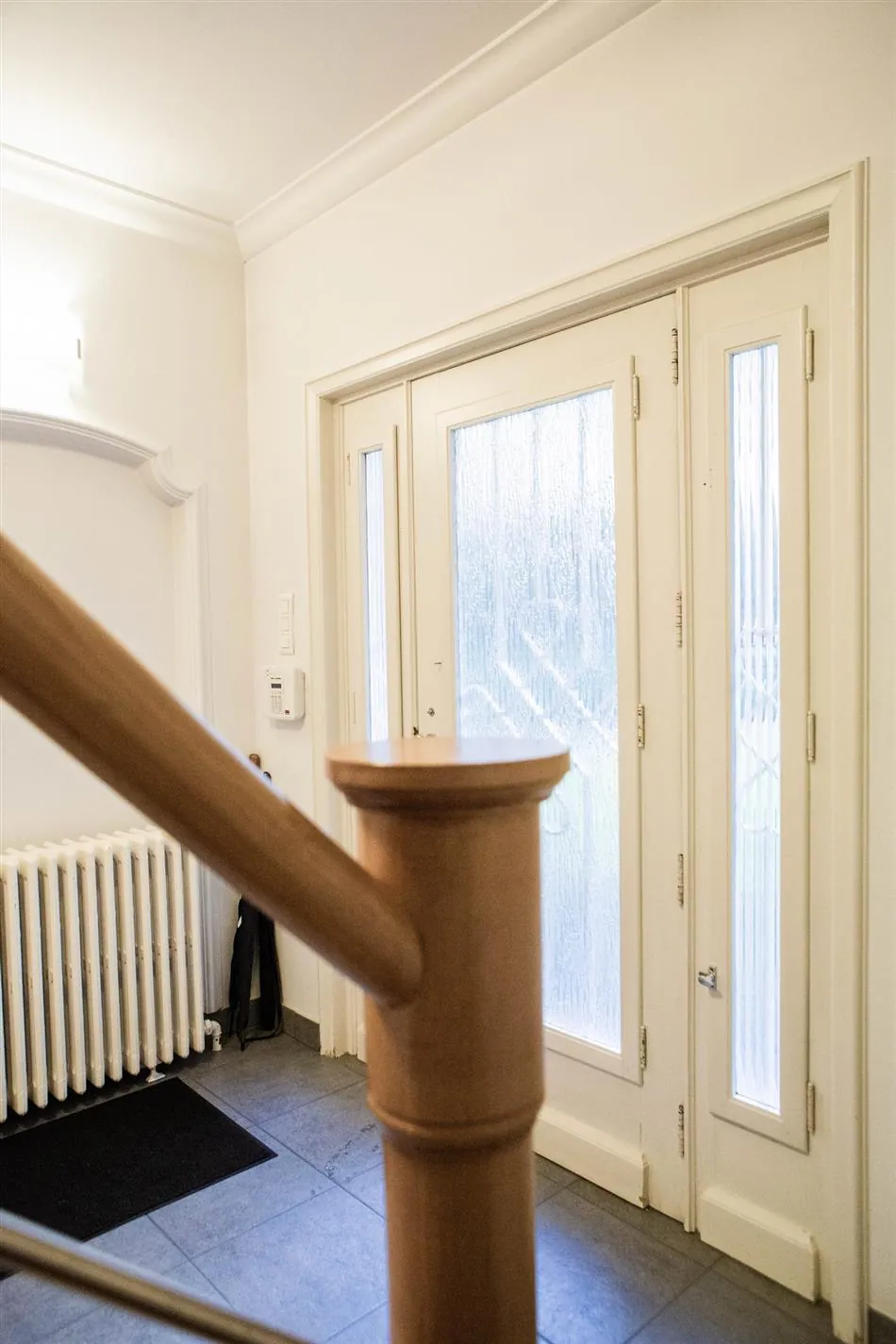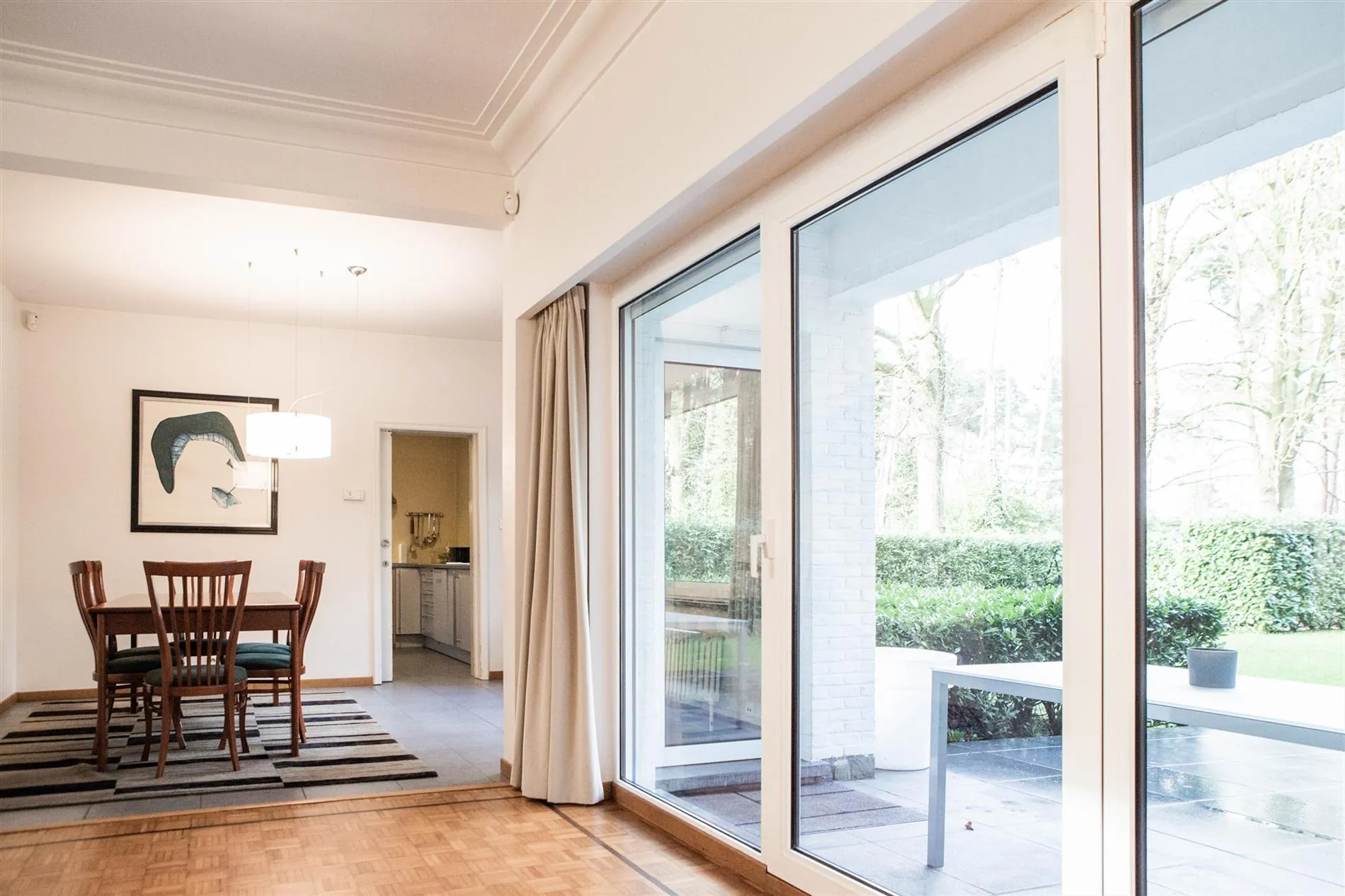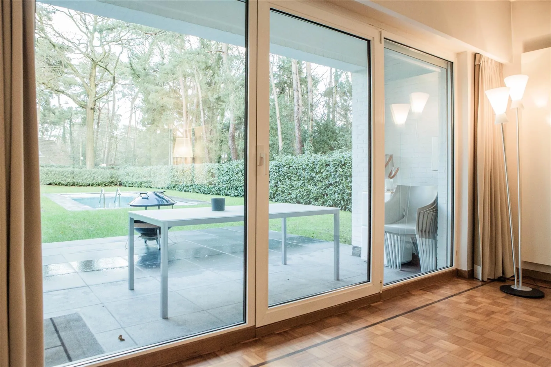 Op het gelijkvloers ontvang je je gasten in een ruime inkomhal met authentieke trap en een gastentoilet. De open leef- en woonruimte met originele mozaïek parket biedt een prachtig zicht op de open aangelegde en volgroeide tuin en het bijhorende zwembad. Aansluitend vind je de keuken, die tevens mogelijkheden biedt om nog te worden uitgebreid, bijhorende berging, wasplaats en toegang tot een multifunctionele ruimte waarin momenteel een jacuzzi, stoomcabine en een bijkomend gastentoilet is voorzien.