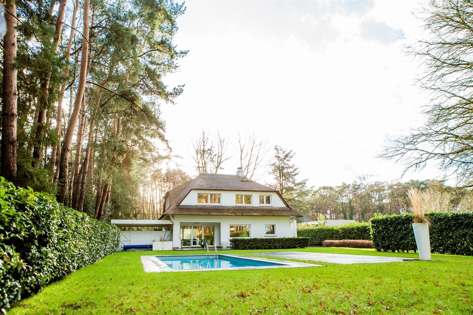 Zeer ruime, stijlvolle villa met in totaal 3 slaapkamers, 2 badkamers, 5 toiletten, dressing, burelen, praktijkruimte en verwarmd buitenzwembad op meer dan 1.600m2 in Bonheiden.