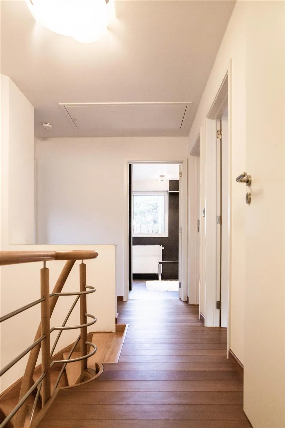 Op het eerste verdiep van het woongedeelte geeft de nachthal toegang tot 3 ruime slaapkamers met telkens individuele bergruimte, een dressing en twee badkamers met twee toiletten.