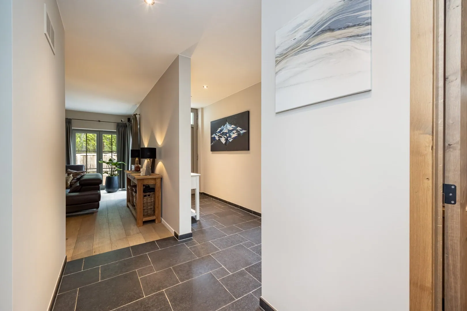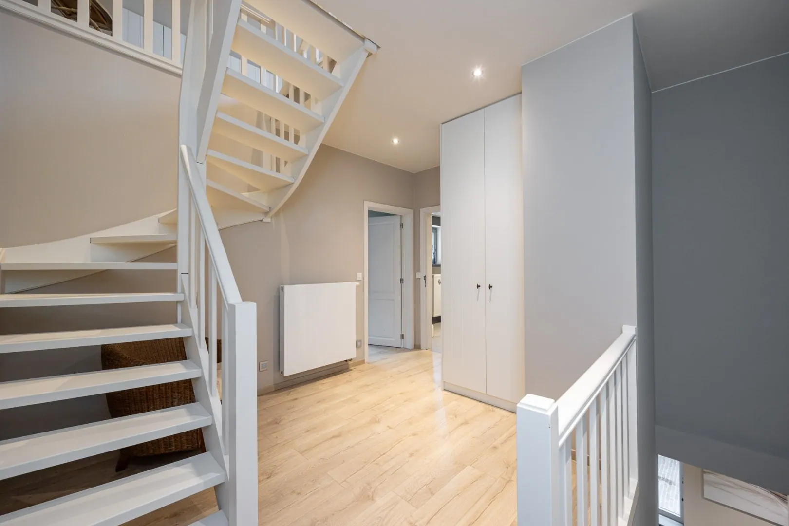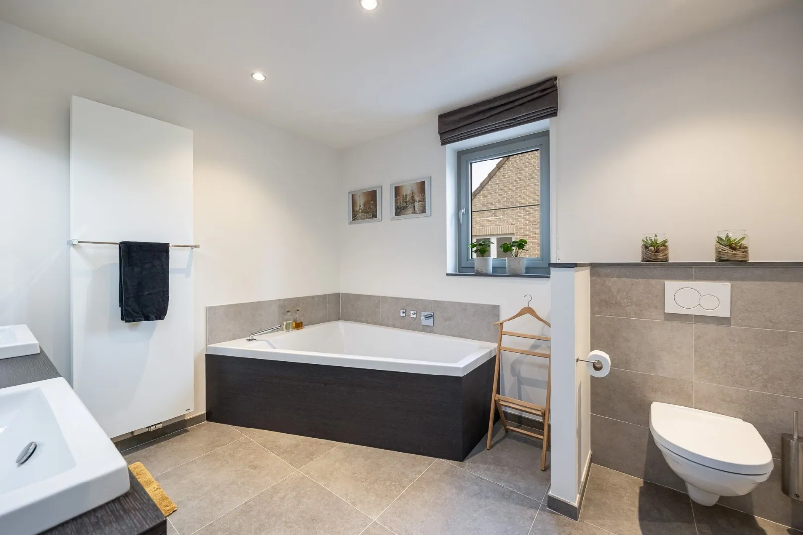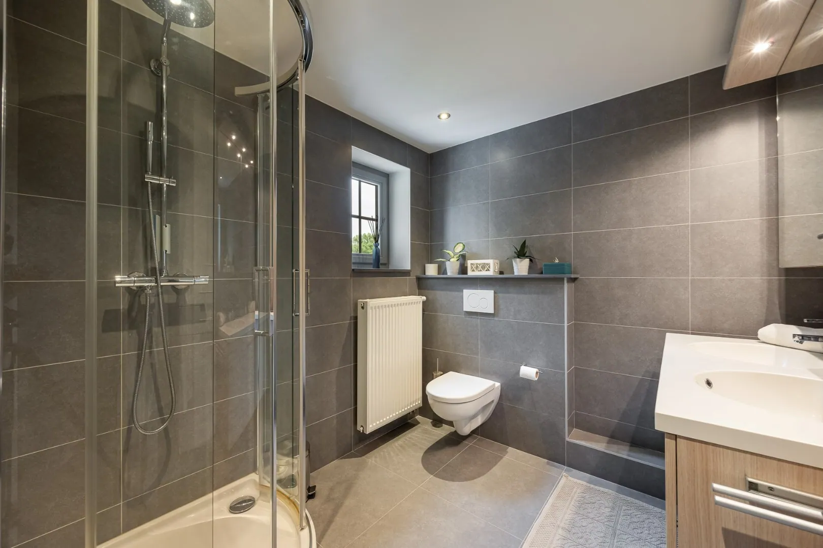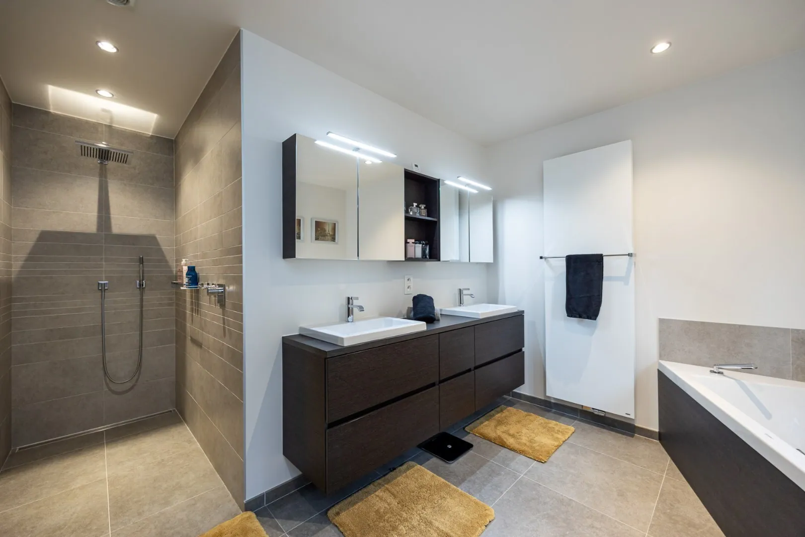 Deze woning beschikt over drie slaapkamers, elk ontworpen met comfort en rust in gedachten. Een ruim en praktisch ingerichte dressing sluit aan bij de Masterbedroom. Verder zijn er twee badkamers, één met douche, de andere met inloopdouche en ligbad.