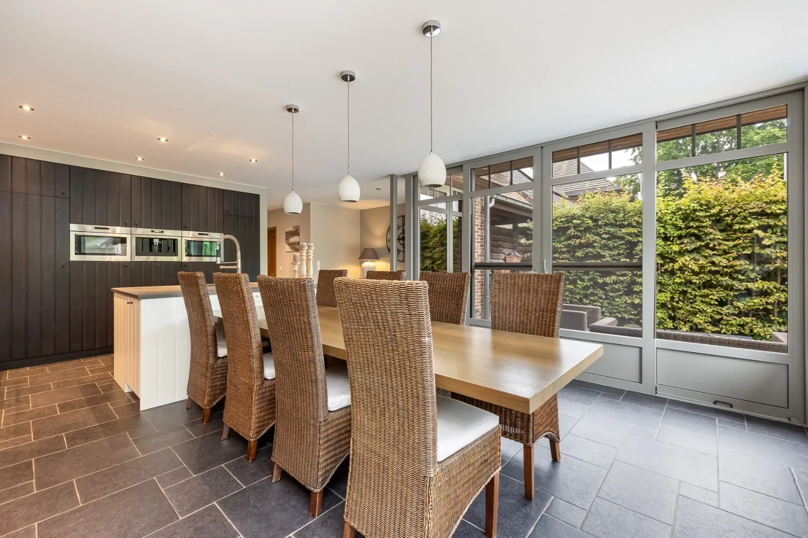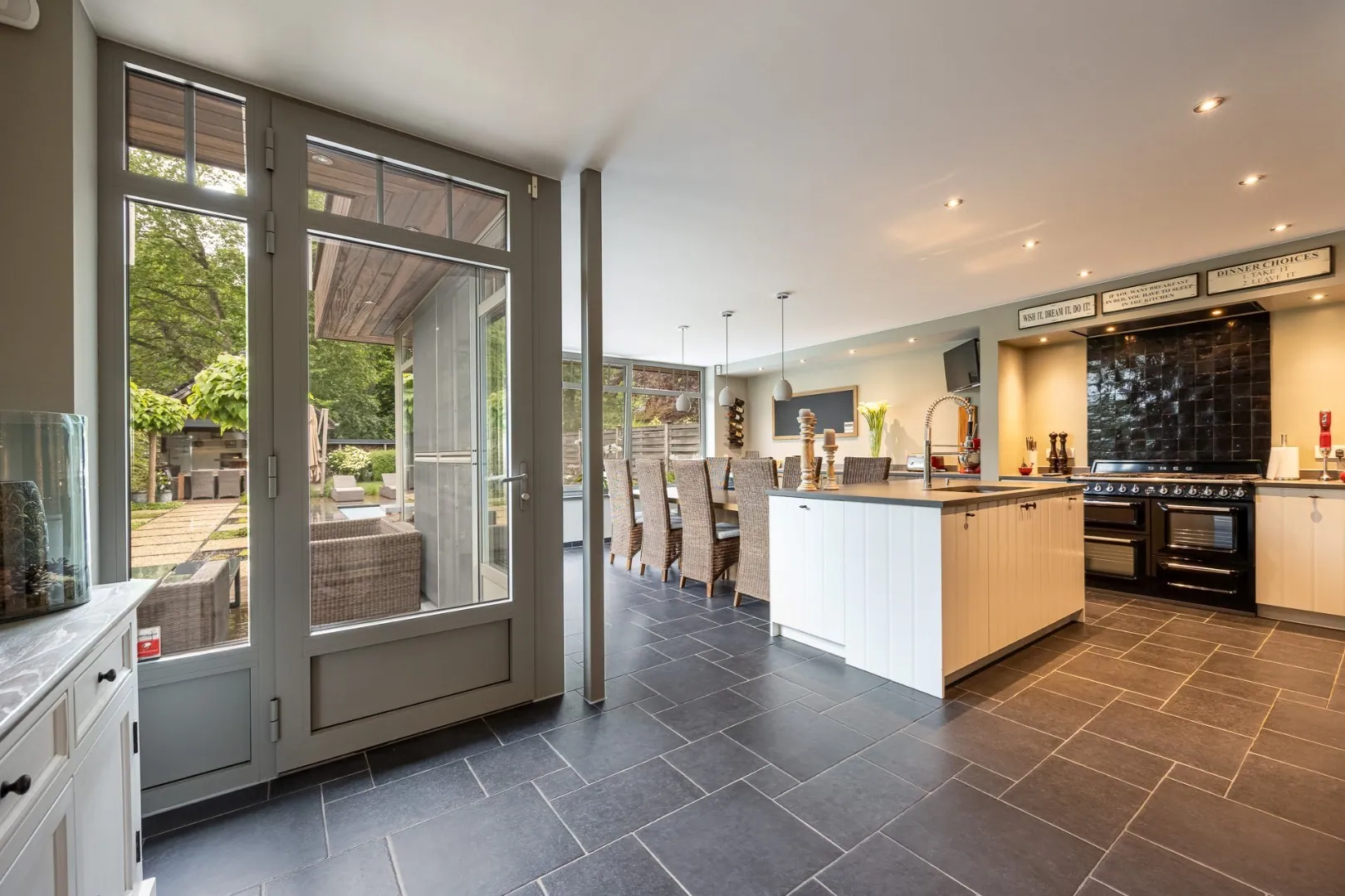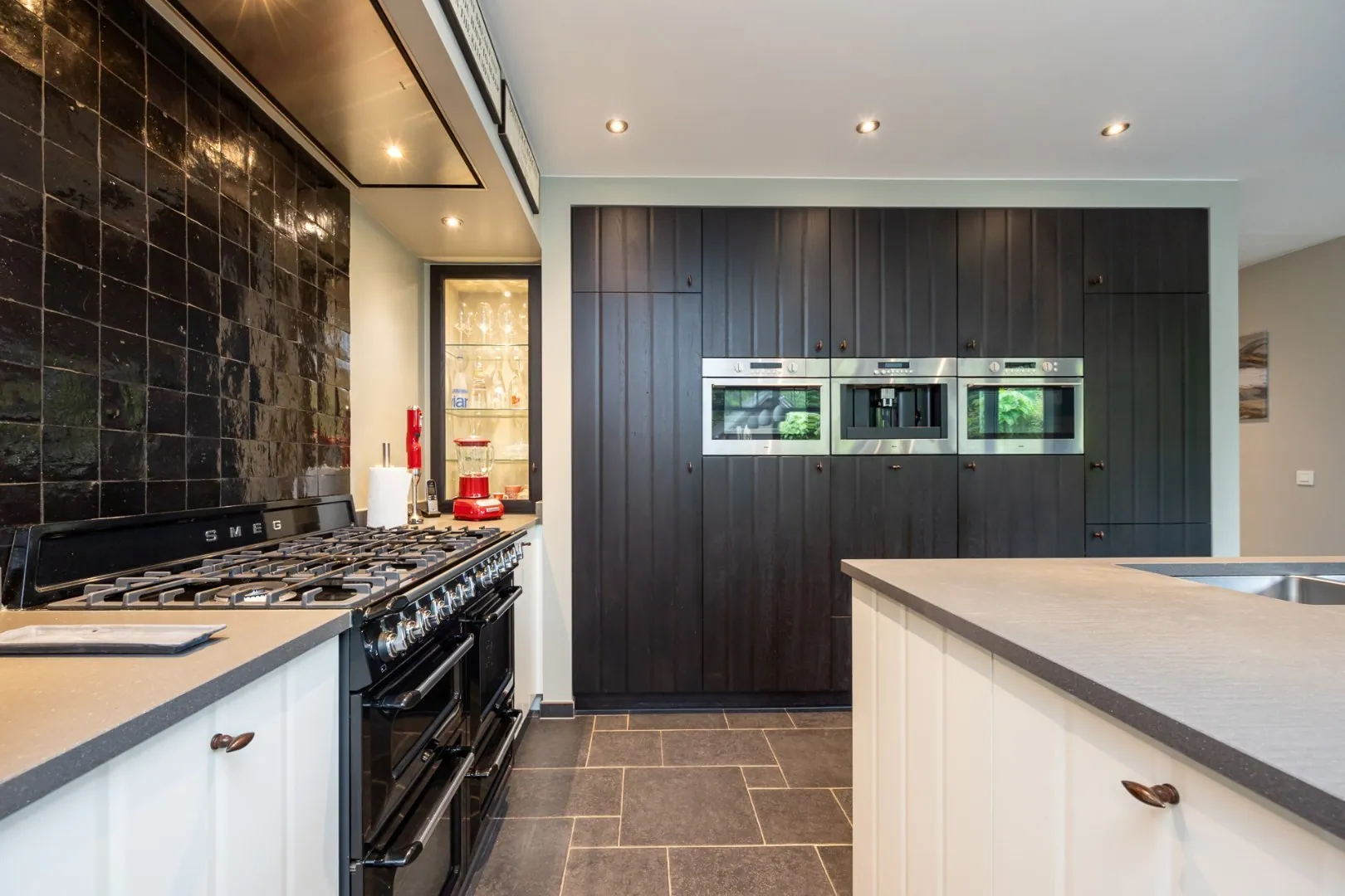 De ruime leefkeuken in deze woning is de droom van elke chef-kok en voorzien van state-of-the-art apparatuur. Aansluitend aan de keuken is er de gezellige, ruime woonkamer voorzien van parketvloer.