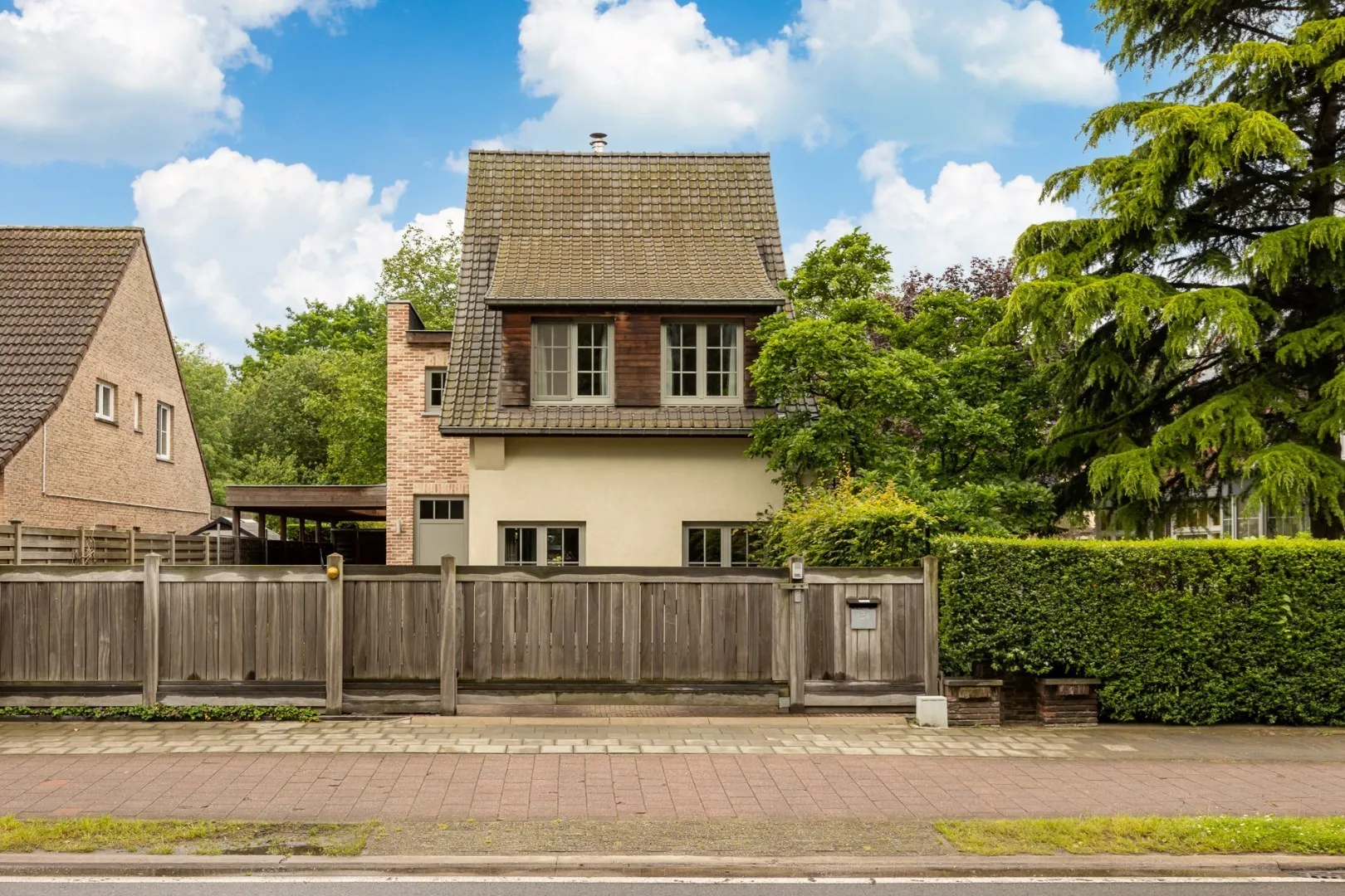 Er is een carport voor twee wagens en een ruime oprit die plaats biedt voor 2-3 extra wagens.