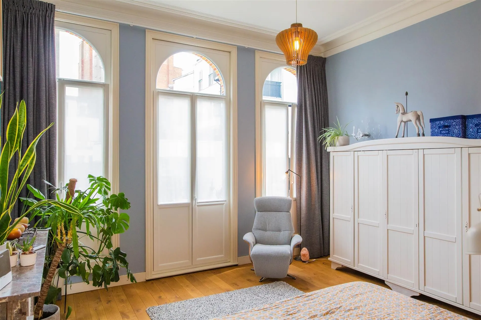 Eén verdieping hoger brengt de statige traphal je naar de master bedroom met eveneens heel wat karaktervolle, originele elementen en de tweede ruime slaapkamer (met dubbele toegang) aan de achterzijde.